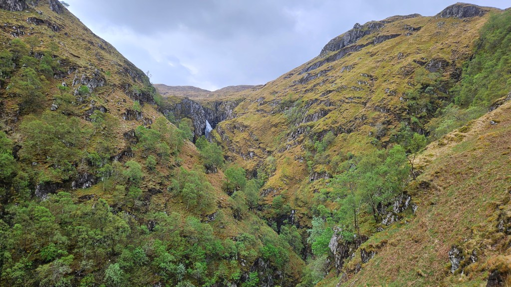 Camping by the river previous night was a right choice- while planning my route I was thinking about camping on the hill by the Falls of Glomach. I’m so glad I stopped when I did! Reaching the falls took me two hours despite it being only 2 miles away. Steep rocky climb with bits of scramble surely wasn’t made for speedy hiking!