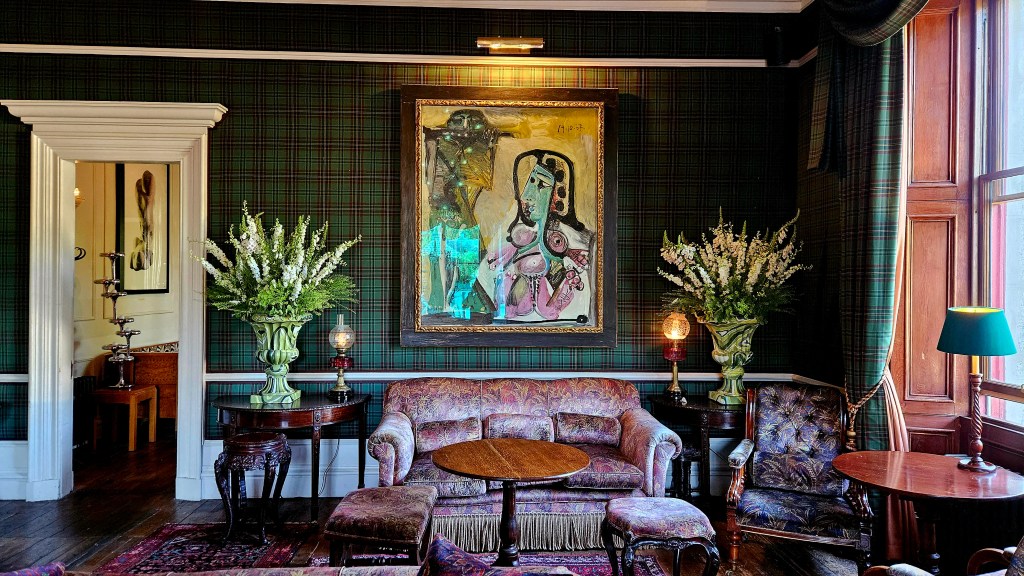Later that evening I went to Fife Arms. Pricey, I know. Sat down at the hotel bar, The Flying Stag, and enjoyed my overpriced pint. I turned to a waitress ‘Hey, I have two questions. Where are your toilets and where is your Picasso?’ ‘We actually have two. I will show you!’ she smiled and took me to one of the back rooms. Oh yes, I didn’t mention. Small village in the middle of Scottish Highlands may be the least expected place to look for Picasso paintings. But there, in Fife Arms they have it. Even two, I found out that day.