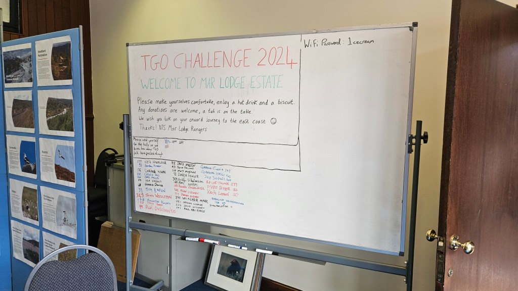 First I stopped at Linn of Dee. With its fast flowing water, River Dee can be seen in all it’s glory. From there I walked alongside the road, straight to Mar Lodge. It’s one of those places that look after the challengers. During The Great Outdoors Challenge doors are open, and tea, coffee and biscuits are waiting for you. There is plenty of space for everyone to sit down and relax for a little bit, also sockets to charge your phone and a wifi to connect to the outside world after few days in wilderness. Oh, they also take resupply parcels. First I came across that idea on my previous challenge. How brilliant- to send yourself few items, either food or a set of clean clothes (that were waiting my arrival at Montrose). I told myself to do that on my other long distance walks too.