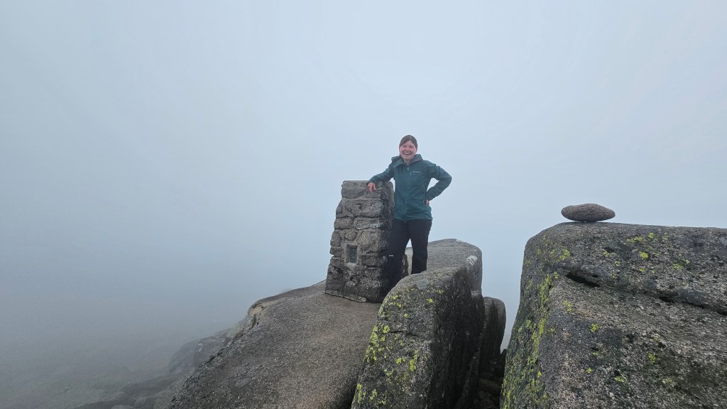 Sadly, thats when the view ended, I walked straight into the clouds. Maybe it was walking without the extra weight but reaching the plateau felt like an easy work- it wasn’t steep but also wasn’t long, just a perfect balance. I wanted to say the path is straightforward but… once you reach the plateau, that’s when the things get complicated. While approaching from Loch Muick- the first and the highest summit will be to your right (North on the map). Actually, there are two summits and that’s what is confusing. First is Cac Carn Mor, which is quite often mistaken for Lochnagar. What you have to do is go behind the cairn and keep following the path for another 500m to Cac Carn Bearg. You will see the trig point. That’s Lochnagar.