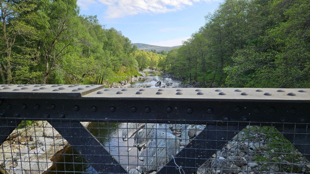 After leaving the village, I hit the tarmac and walked alongside the road passing Glenesk Folk Museum where some of the challengers were having their breakfast. Suddenly I regretted filling my belly with the porridge. Will know better for the next time. Not long after that I turned towards the River Esk and crossed the bridge. The year before I haven’t properly checked my notes- carried on towards the second bridge which was closed and ended up fording the river Esk. Water was cold and up to my thighs which actually felt great on a scorching hot day. Probably wouldn’t mind doing that again.